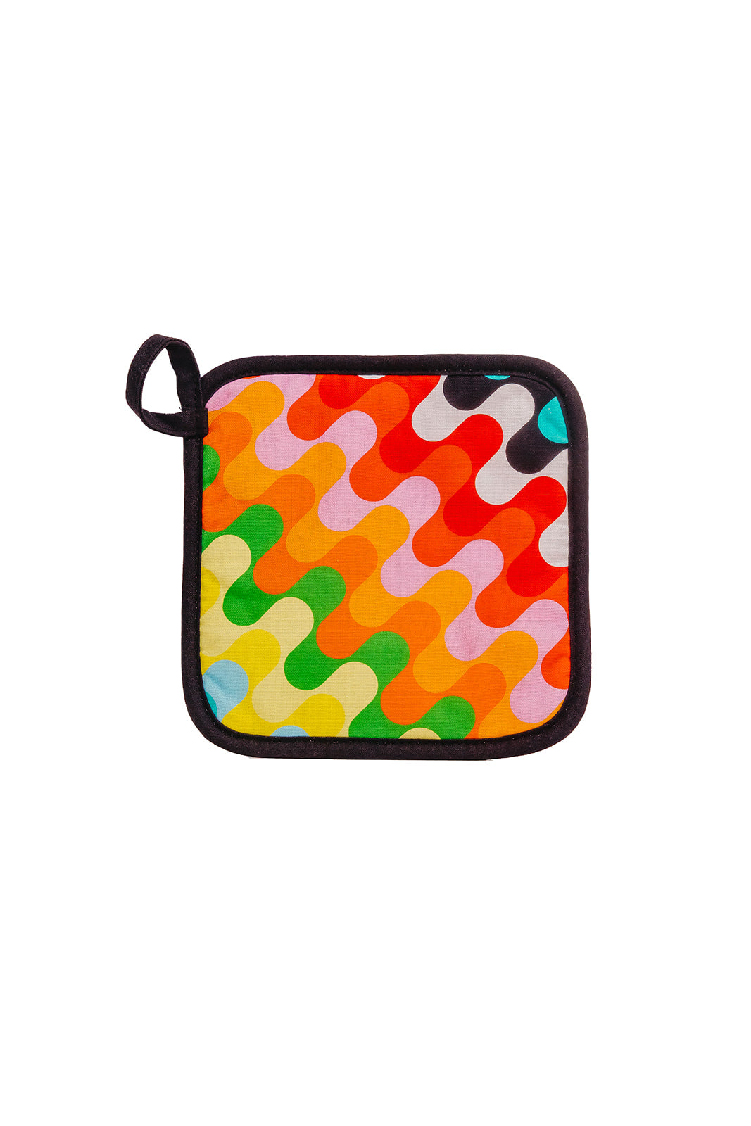 Complete the look with this matching pot pad — the perfect partner for your oven mitt! Crafted from soft cotton with the same fun mix of prints, it’s ideal for protecting your hands, counters, and tabletops from hot dishes. The thick, heat-resistant design offers both comfort and durability, while the hanging loop makes it easy to store or show off. Cute, cozy, and kitchen-ready — a small but mighty touch of charm for every meal! Turn up the heat and get crae.