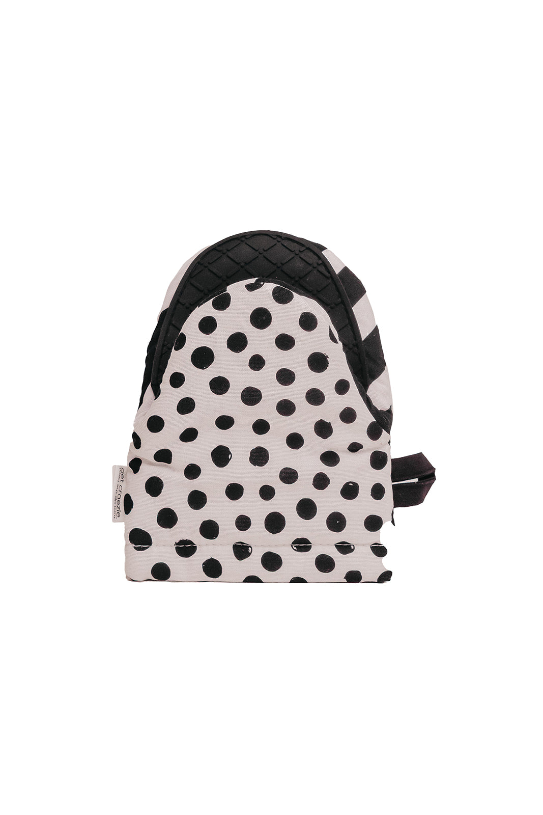 The mini oven mitt is made from soft cotton with a cheerful mix of prints and a silicone-lined grip inside for a secure hold on hot pans and baking trays. Measuring 7.5” x 5.5”, it fits comfortably on either hand and includes a hanging loop for easy storage (or display!).