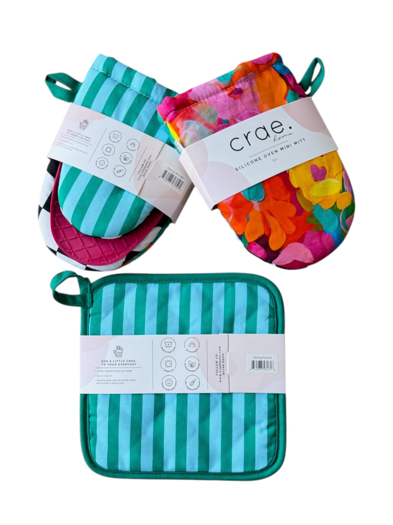 Small but mighty, this adorable 2 Mini Mitts + 1 Pot Pad Bundle brings all the charm and function you love in one perfectly paired set. Designed for quick-grab cooking moments, this duo is cute, cozy, and built to handle the heat.