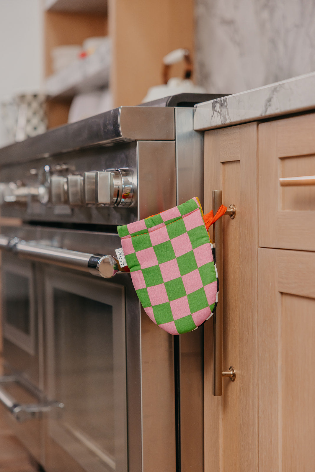 Small but mighty! This adorable mini mitt packs all the charm and function of our full-size version in a shorter, handier size. Made from soft cotton with a cheerful mix of prints, it features a silicone-lined grip inside for a secure hold on hot pans and baking trays. Measuring 7.5”x 5.5”, it fits comfortably on either hand and includes a hanging loop for easy storage (or display!). Cute, cozy, and perfectly sized for quick grab everyday cooking moments! Turn up the heat and get crae.